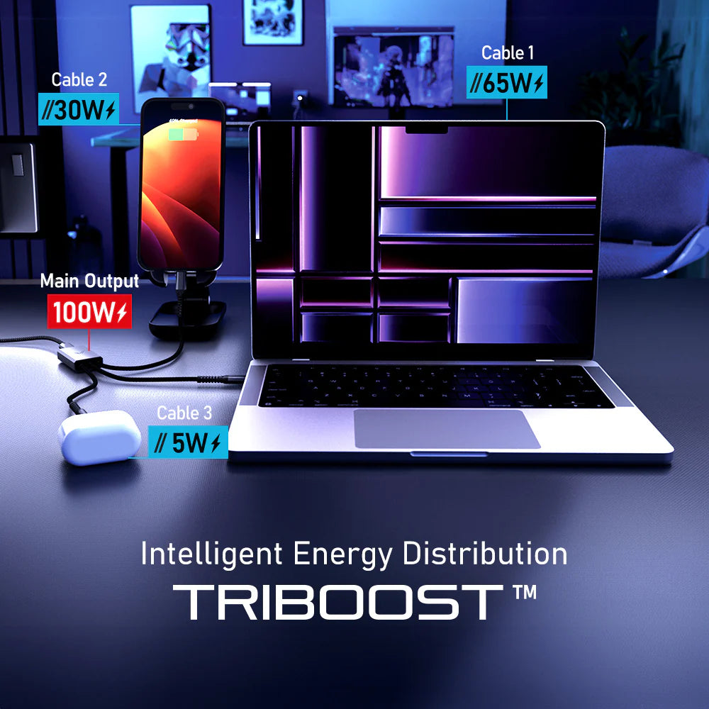 Imaginez un chargeur capable d’alimenter simultanément votre ordinateur portable, votre smartphone et vos écouteurs, sans perte de vitesse ni compromis sur la performance. L’Adaptateur Hydra Triple Type-C transforme cette vision en réalité avec ses trois ports USB-C ultra-performants et sa technologie Triboost 100W. Chaque watt est optimisé pour donner à vos appareils la puissance dont ils ont besoin, au moment où ils en ont besoin.
