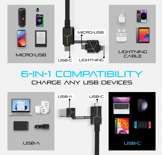 Câble universel Zeus-X Go Ultra 6-en-1 (Togo)