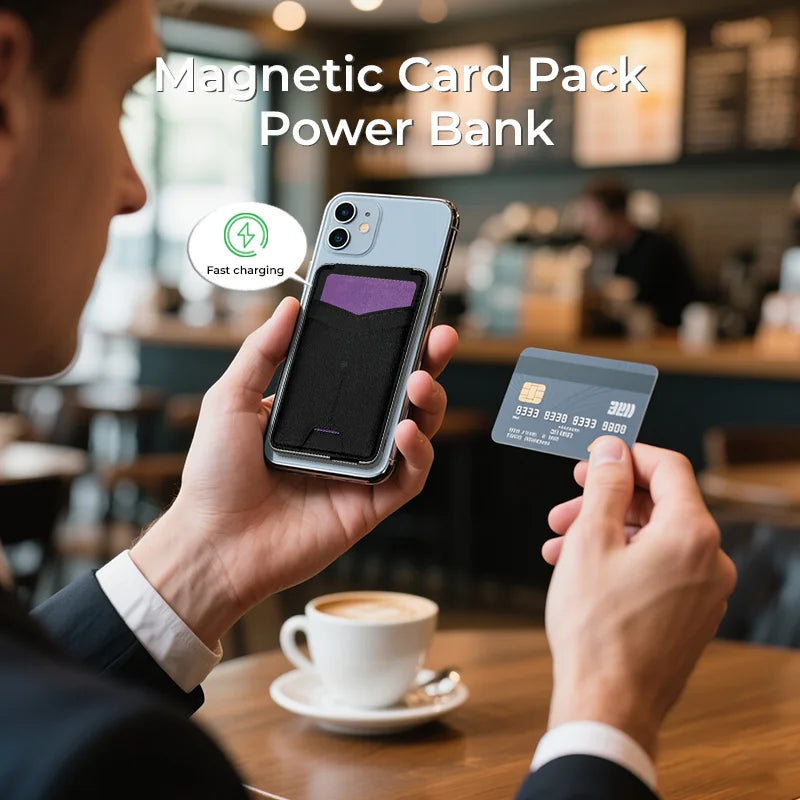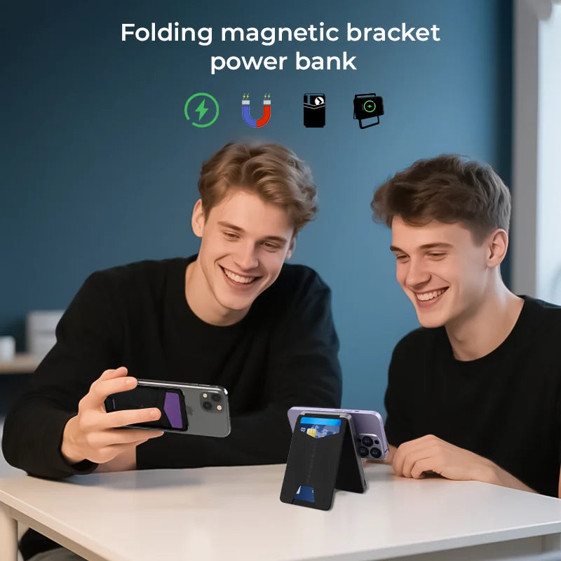 Bien plus qu’un simple powerbank, ce modèle se transforme en porte-cartes discret et pratique. Glissez vos cartes bancaires ou professionnelles et emportez l’essentiel avec vous en un seul accessoire. Avec son support pliable intégré, il devient également un socle parfait pour vos appels vidéo ou vos moments de détente devant un film.