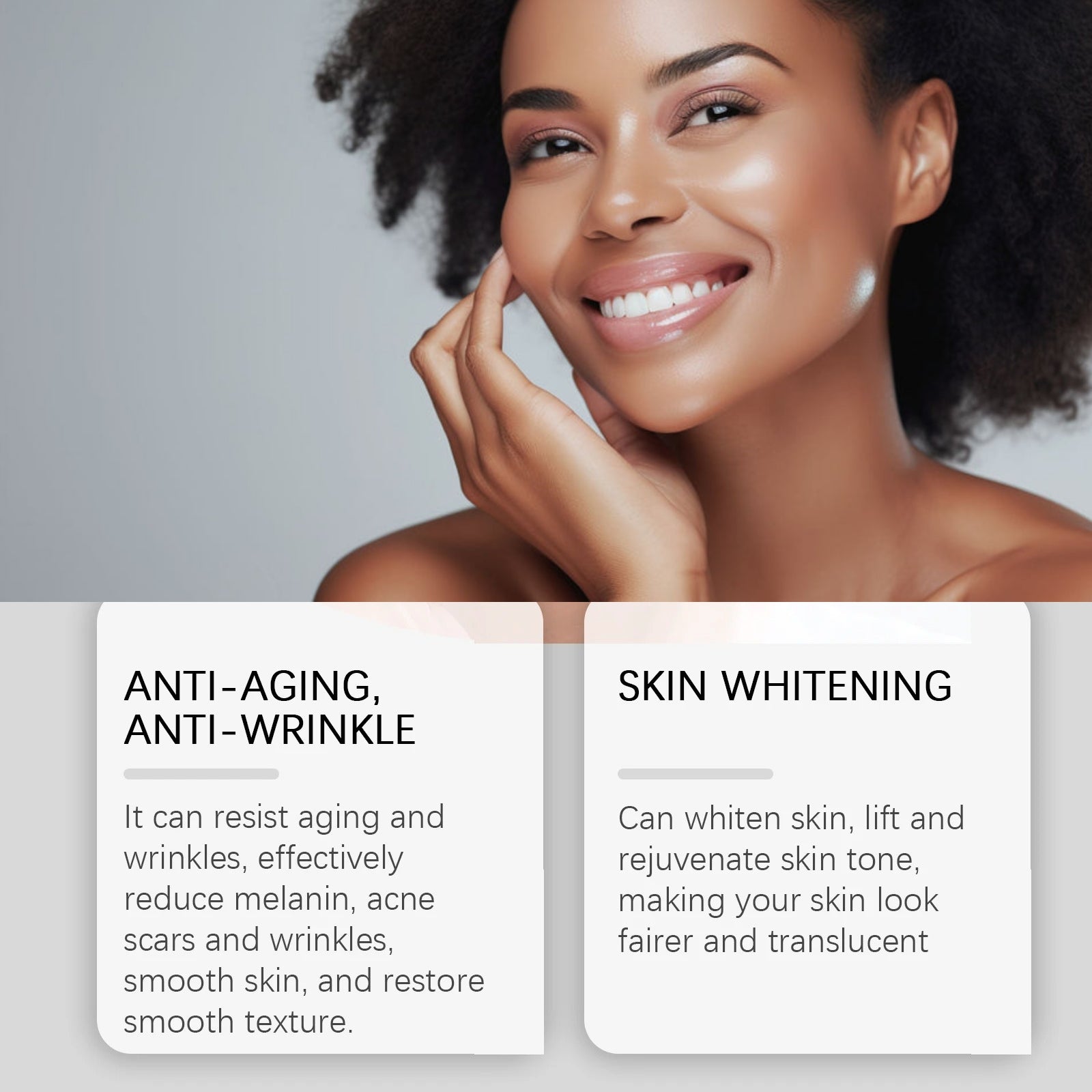 Un soin complet pour une peau radieuse et hydratée Notre crème ne se contente pas d’illuminer votre teint : elle nourrit intensément grâce à l’acide hyaluronique et la glycérine, qui retiennent l’hydratation pour une peau souple et rebondie. Enrichie en extraits naturels comme l’aloe vera et le nid d’hirondelle, elle apaise, affine le grain de peau et stimule la production de collagène pour une apparence plus ferme et lisse.