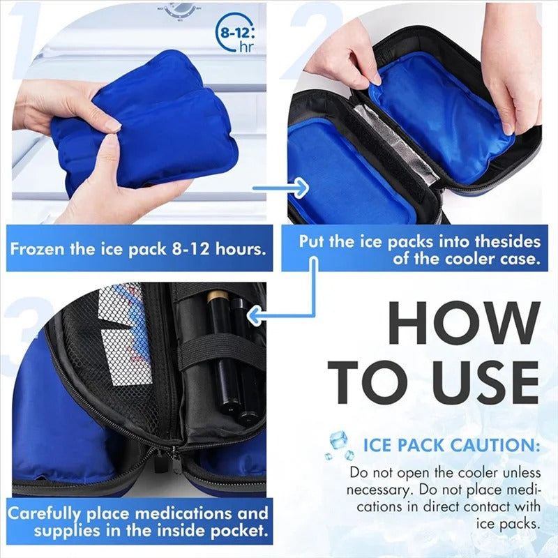 Fabriqué en EVA de haute qualité, cet étui robuste est doublé d’un coton perlé épais et d’un système à triple isolation. Résultat : une performance de refroidissement remarquable. Deux grands packs de glace réutilisables, couplés à une batterie bouton, permettent de conserver vos traitements à basse température pendant jusqu’à 12 heures, même en plein soleil. Ce niveau de fiabilité fait de lui un compagnon essentiel pour vos voyages, déplacements quotidiens ou journées actives.