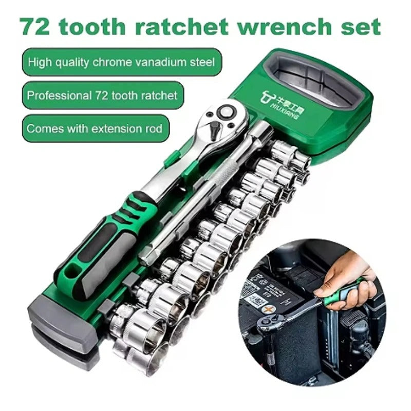 Fabriqué en acier chrome-vanadium, ce kit est un modèle de durabilité. Résistant à l’usure, à la corrosion et aux fortes températures, il vous assure des années d’utilisation sans faiblir. Chaque douille est parfaitement ajustée pour éviter tout glissement, et la clé à cliquet offre une prise en main confortable pour travailler vite et bien, même dans les espaces les plus étroits.