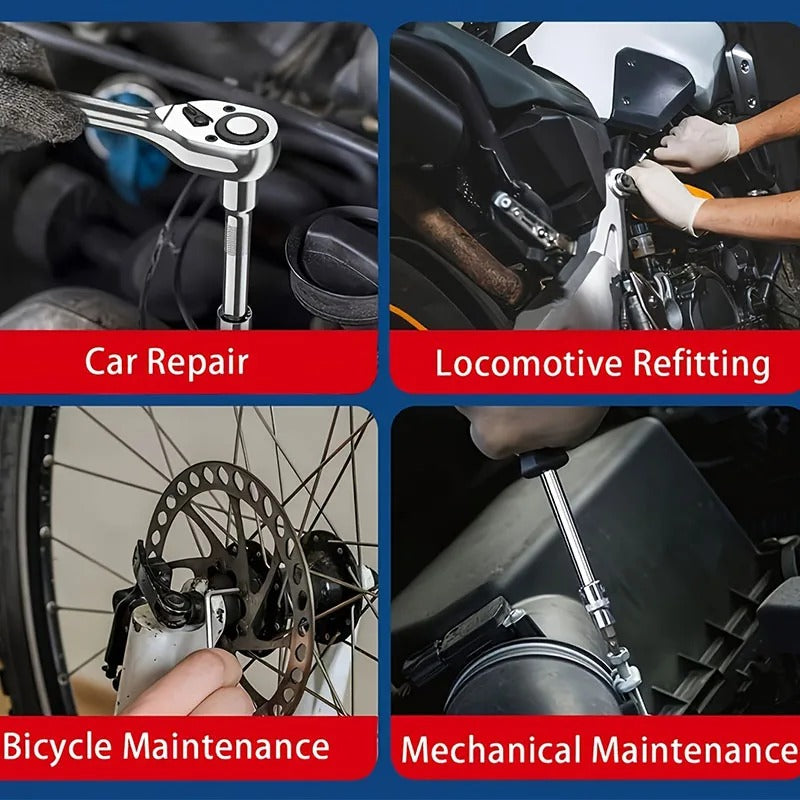 Pensé pour la mobilité, ce kit se glisse facilement dans un coffre de voiture, un sac à dos ou une boîte à outils. Que vous soyez en déplacement, en plein montage de meuble ou en train de dépanner votre moto, il sera toujours là pour vous accompagner. Sa conception compacte n’enlève rien à sa robustesse : il est prêt à relever tous les défis, où que vous soyez.
