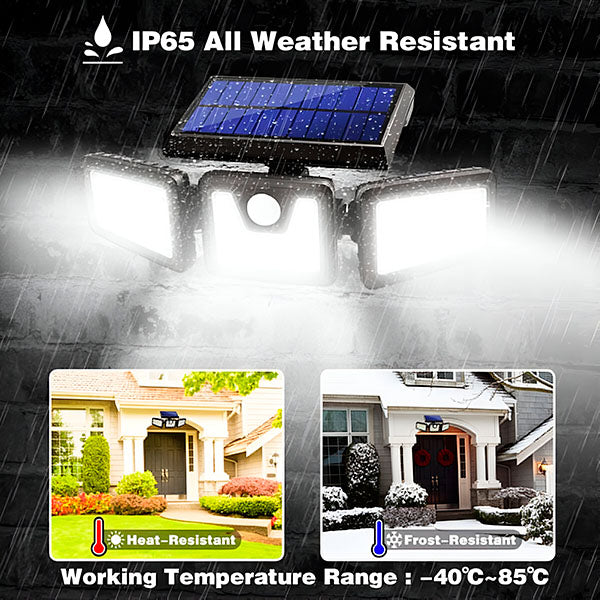Imaginez une lampe qui vous éclaire uniquement quand il le faut, qui fonctionne sans fil ni prise, et qui vous fait économiser sur vos factures. C’est exactement ce que propose cette lampe solaire de sécurité à 3 faces. Dotée de 74 LED ultra-puissantes, elle délivre jusqu’à 1000 lumens de lumière blanche (6500K), avec un angle d’éclairage de 270° pour ne rien laisser dans l’ombre. Grâce à l’énergie solaire, elle fonctionne en toute autonomie et éclaire vos extérieurs jusqu’à l’aube.