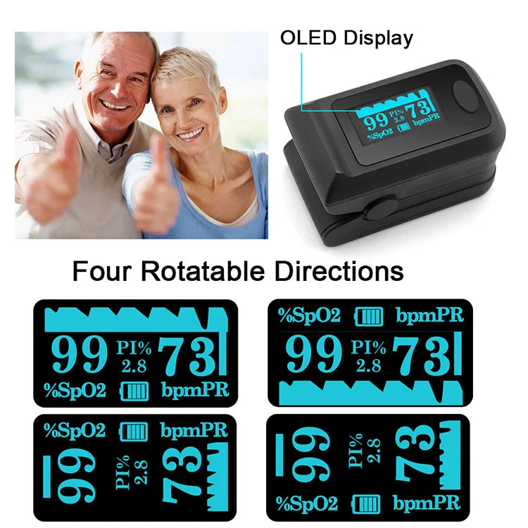 Prenez le contrôle de votre santé, au bout des doigts. Grâce à ce moniteur d’oxygène sanguin compact et intelligent, vous obtenez en quelques secondes des données précieuses sur votre saturation en oxygène (SpO2) et votre rythme cardiaque. Il suffit de glisser votre doigt dans le capteur : en 5 secondes, les résultats s'affichent sur un écran LED haute définition, clair et lisible, même dans l'obscurité. Que vous soyez sportif, senior ou simplement soucieux de votre bien-être, cet appareil vous accompagne partout.